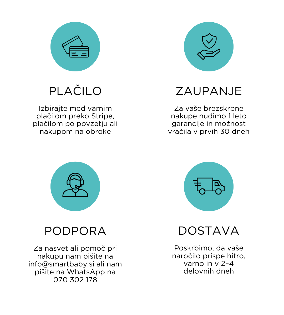 Lahka konstrukcija, enoročno zlaganje in kompaktna oblika omogočajo enostavno uporabo doma ali na poti. Udobje za otroka in praktičnost za starše v enem sodobnem vozičku.